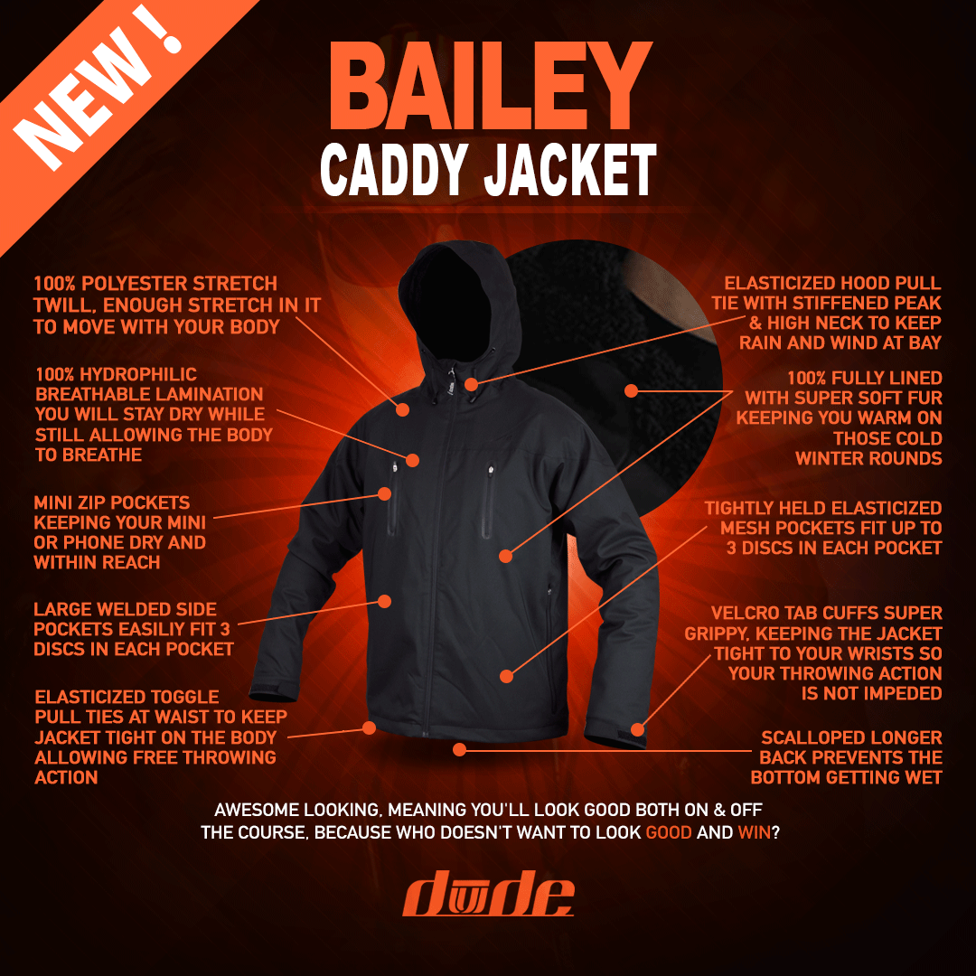 For those of us lucky enough to have been wearing the Dude Tech Caddy Jacket for the last 3 years we have a full understanding of just how good it is to keep the body and the discs dry during competitive rounds of Disc Golf. Now with the addition of the Fur lining you will not need to add layers underneath during the cold rainy rounds. With the addition of this lining The Bailey Caddy Jacket will keep you warm and dry.