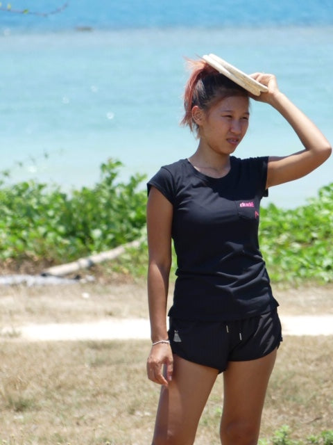 A flattering cut and lower neckline make this the feminine version of the DUDE Tee. Same fabric as the men’s so dries super-fast, and has odour resistant stuff built in. Will keep its shape and colour wash after wash. The hidden towel adds no extra bulk and is super handy for cleaning wet discs, glasses and phones – you won’t want to wear any other tee! "I was rocking your Ladies Boomer tee and Skort. It's my most favorite shirt EVER! The quality is seriously top notch and I eventually plan on owning one in every color!" August 2016, Jesse Lynn